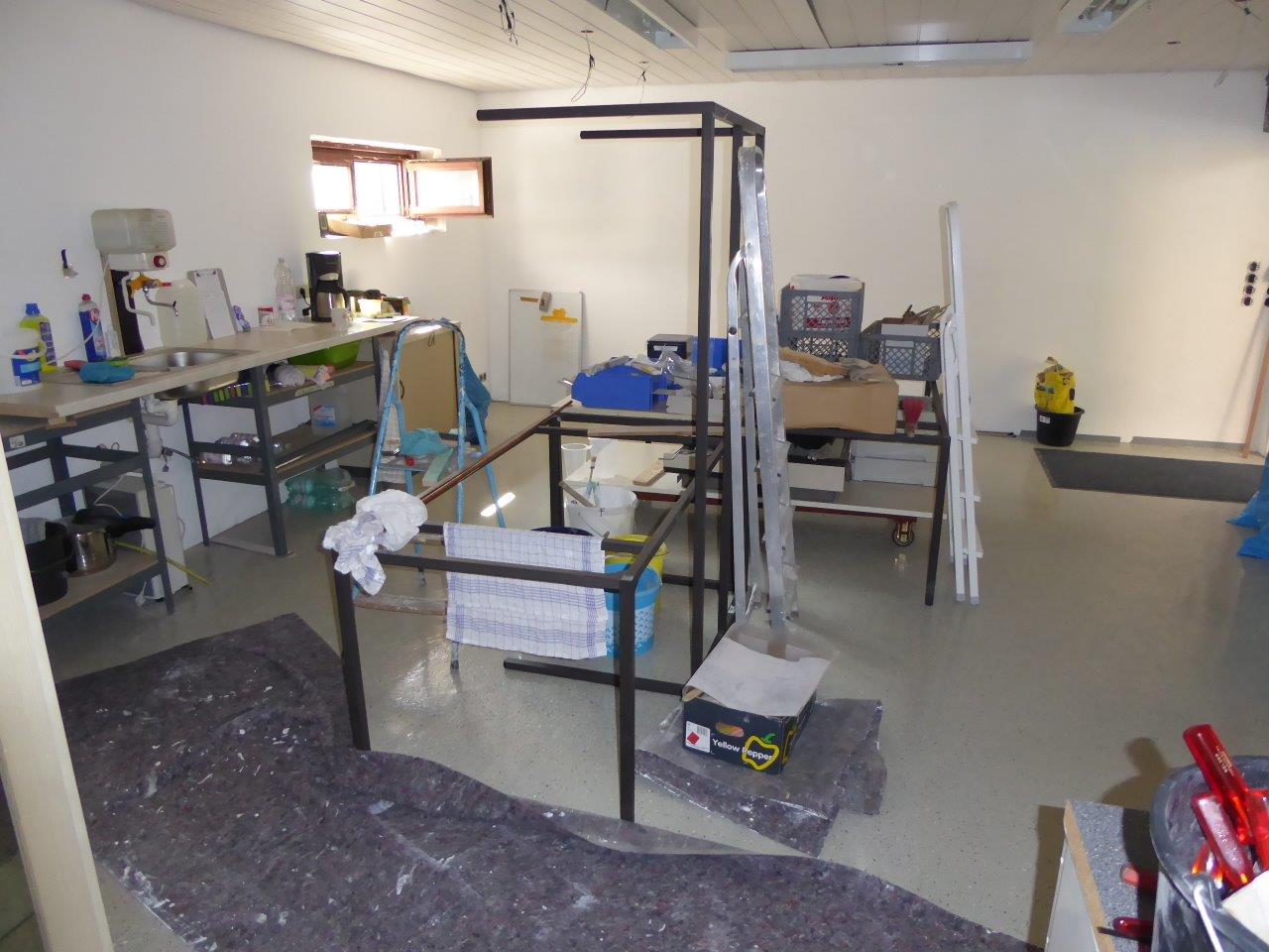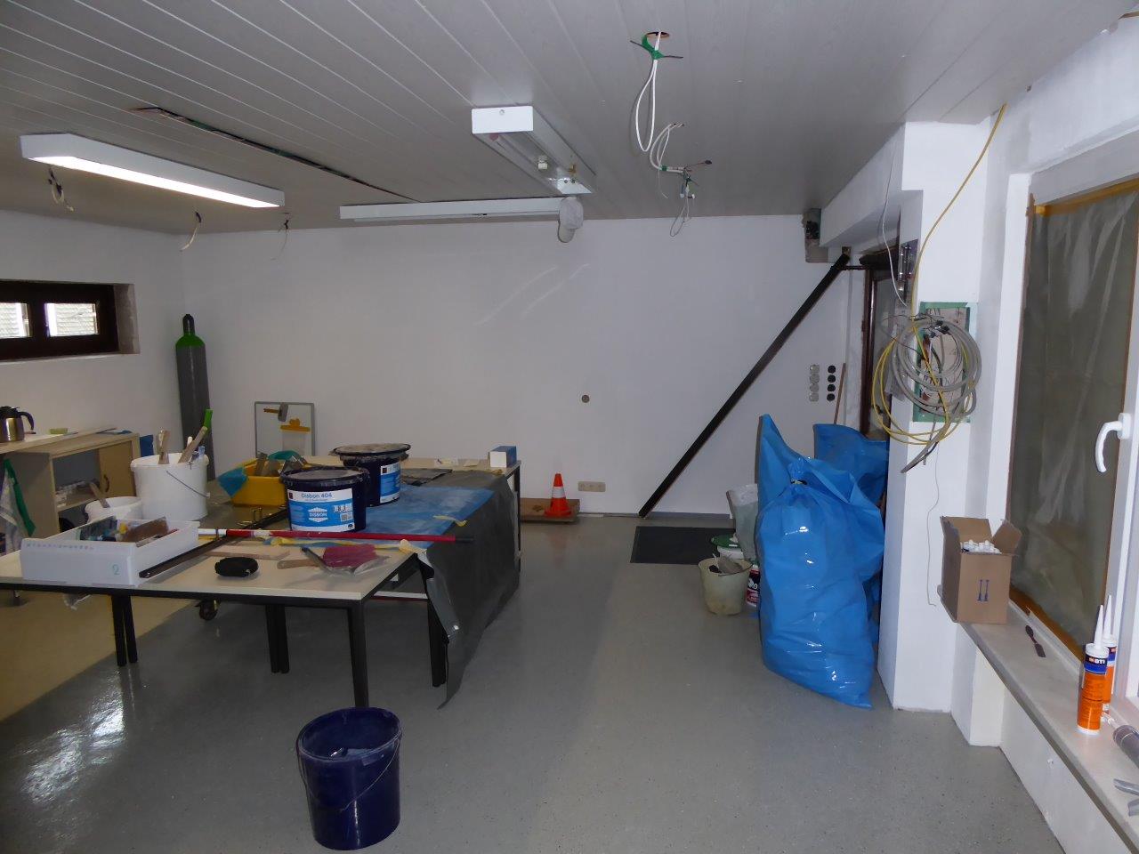 - Die Zwischenwände in den Materialräumen sind fertiggestellt und fast alle auch gestrichen