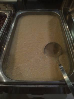Gegen 13:00Uhr gab es Mittagessen. Milchreis mit heißen Kirschen oder Apfelmuß. Und für alle die das nicht mochten Reissalat.