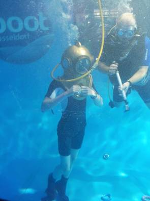 Um 11:00Uhr hatten Florian und Sina die Möglichkeit das Helmtauchen auszuprobieren. Die beiden hatten viel Spaß.