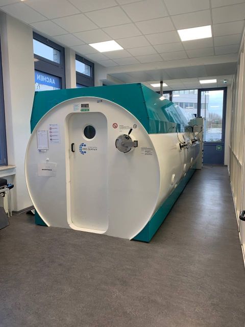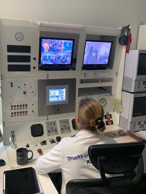 Zu Beginn hat uns die Fachärztin Dr. med. Daniela Koonen bei Kaffee und Tee einen tollen Vortrag über die Gefahren beim Tauchen und die Auswirkungen eines Tiefenrausches gehalten. Dann ging es in zwei Gruppen in die Druckkammer. Nach einer kurzen Einweisung durch Daniela wurden die Türen geschlossen und die Fahrt begann.