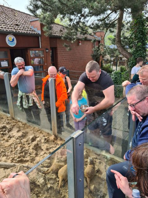 Zur Belohnung hatte Olaf noch für alle Teilnehmer eine kleine Tierparkführung organisiert. Unsere Zoologin kannte viele interessante Details zu den Seehunden, Humboldt-Pinguinen, Waldrappen, Kattas, Totenkopfäffchen, Flachlandpakas, Kune Kune, Erdmännchen, usw. Natürlich hat der Tierpark noch viel mehr Tiere, aber alle konnten wir nicht bei der Führung besuchen. Das Highlight der Führung war bestimmt, dass wir die Erdmännchen mit lebenden Mehlwürmern füttern durften. Das war zwar nicht für alle Teilnehmer etwas, aber den Erdmännchen hat es sichtlich geschmeckt.