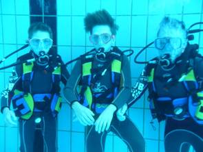 Am zweiten Tag dann der Höhepunkt: das Gerätetauchen. Mit Begeisterung waren unsere Teilnehmer bei der Sache. Nach einer kurzen Einweisung in das Gerät und der anschließenden Verteilung der Ausrüstung incl. Anzügen ging es los. Ab ins Wasser und schnell den Kopf unter die Oberfläche. Zum Glück hatte keiner der Teilnehmer ein Problem mit dem Druckausgleich, und auch die vorhandene Nervosität wurde schnell über Bord geworfen.