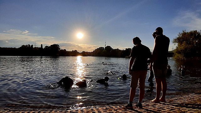Eigentlich war das Freigewässertraining in Köln schon für den 5. Juni geplant, doch wegen des grottenschlechten Wetters an dem Tag musste die Veranstaltung kurzfristig abgesagt werden. Aber am 12. Juni 2020 war es bei herrlichem Sommerwetter und knapp 30° Luft- und etwa 20° Wasseroberflächentemperatur dann endlich so weit: Es war das erste Schwimm- und Schnorcheltraining des TSC seit drei Monaten! Etwa 20 TSC'ler waren anwesend und hielten den noch vorgeschriebenen, erforderlichen Abstand zueinander. Ca. 15 von ihnen wagten den Sprung in den See (natürlich mit Neopren), und etwa fünf waren als (Elterntaxi-)Fahrer oder nur neugierig zum Zuschauen gekommen, unter Letzteren der Verfasser dieser Zeilen.