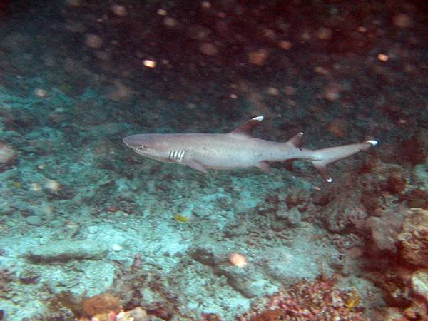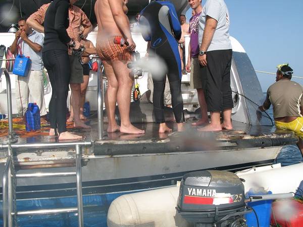 Leider ist auch vor Zabargad an diesem Tag ein Hai dem Wunsch nach einer Haifischflossensuppe zum Opfer gefallen. Diesen hatte man mit den anhängenden Leinen an Bord eines der anderen Safaribooten gezogen und alle standen ziemlich betroffen vor diesem großen, jetzt aber leider bereits leblosen Fisch.