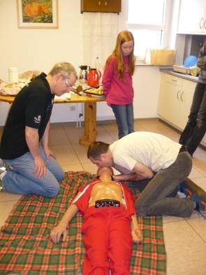 Olaf und ich haben diesmal die Theorie und Praxis der Herz-Lungen-Wiederbelebung den Teilnehmern nahe gebracht.
