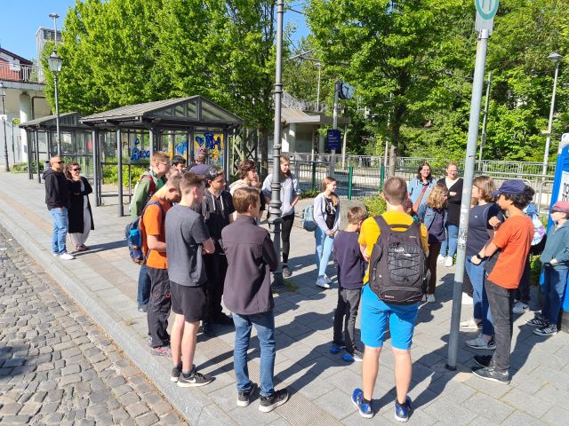 Am Samstagmorgen trafen wir uns gegen 9 Uhr am Bahnhof in Langenberg. Von dort aus fuhren wir angeleitet von Freddy und Lisa mit Bus und Bahn zu unserer Jugendherberge am Sportpark in Duisburg. Diese liegt direkt gegenüber vom MSV-Stadion.