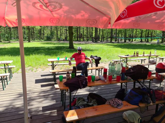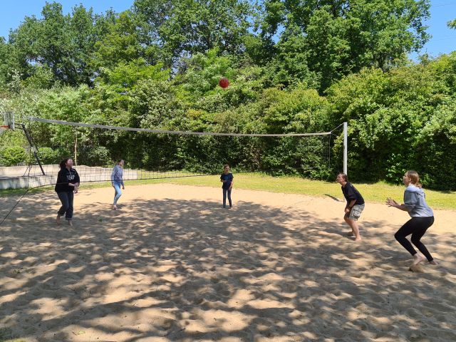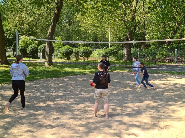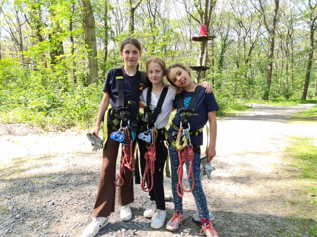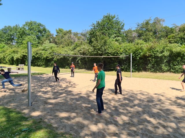 Dort angekommen begannen wir direkt auf der außen Anlage unter anderem Volleyball und Wikingerschach zu spielen. Gestärkt durch ein gutes Mittagessen (Pizza) starteten wir Nachmittags mit unserem Programm. Wir liefen zum nahegelegenen Kletterpark. Vor Ort teilten wir uns in kleinere Gruppen auf und fingen mit den Parcours an. Im Kletterpark gab es verschiedenste Strecken. Manche legten zum Beispiel einen höheren