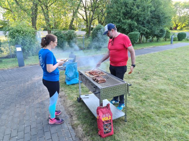 Nach dem wir alle genug geklettert hatten und der Kletterpark dann geschossen wurde, ging es zurück zur Jugendherberge. Hier bezogen wir unsere Zimmer und trafen uns im Innenhof zum gemeinsamen Grillen. Trotz des anstregenden 1. Tages ließen wir dann noch gemeinsam den Abend ausklingen.