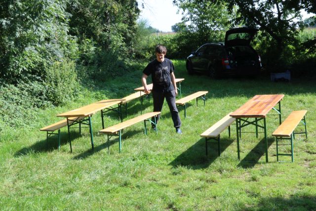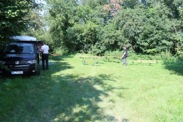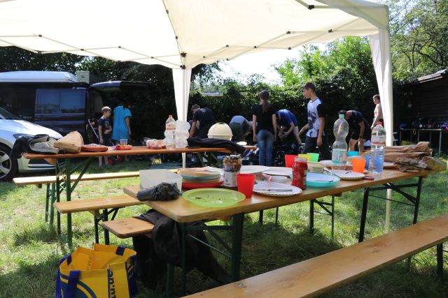 Die Logistik ist bei einem KSK durchaus aufwendiger, da die Kursorganisatoren neben dem inhaltlichen auch den Rahmen gestalten mussten. So musste natürlich auch dafür zu gesorgt werden, dass die Teilnehmer auch bei Kräften blieben. Also hieß es Tische und Bänke einpacken, Einkaufen und rechtzeitig am See sein zum Aufbau.