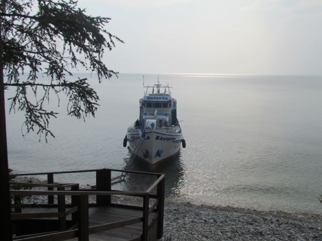 Der Baikal, wie er hier genannt wird, ist 650 km lang und ca. 80 km breit und mit 1600 m der tiefste Süßwassersee der Erde.
