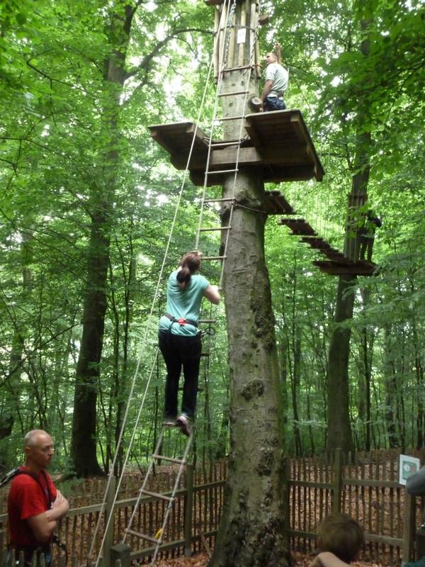 Am 22.6.2013 war es endlich soweit, worauf ich wirklich schon lange hin gefiebert hatte. Privat habe ich es nie geschafft, den Kletterpark in Langenberg zu besuchen, obwohl ich seit Jahren Freikarten mein Eigen nennen darf. Jetzt hatte ich die Gelegenheit mit der ganzen Familie und dem Tauchverein, wer Laune hatte, den Kletterpark in Langenberg zu testen.