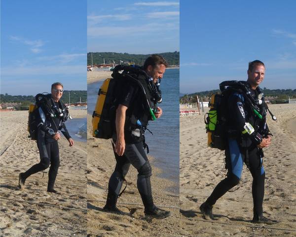 Doch wir hatten schließlich auch was vor: Sommer 2011 sollte es sein, das war bereits auf der „Boot 2011“ mit unserem Ausbilder Alex geklärt. Er leitet seit vielen Jahren die Tauchbasen der European Divers in St. Tropez und Hyeres und bietet auch (oder gerade) Teckis die Möglichkeiten der Aus- und Weiterbildung. Große Boosteranlage mit immer einwandfreier Luft, Sauerstoff und Helium stellt er zur Verfügung. Kreislaufgeräte und Kalk für Kreisel besorgt er, das Team ist mehrsprachig, immer freundlich und die Ausfahrt mit den 200 PS Außenbordern ist immer wieder ein Knüller.