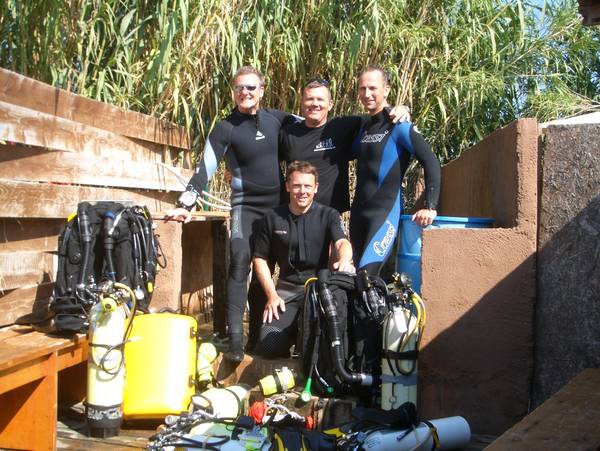 4 Mann mit eigenem Gerät sollte er zunächst zum Normoxic und schließlich zum FullTrimix Taucher ausbilden. Das Ziel waren 100m.