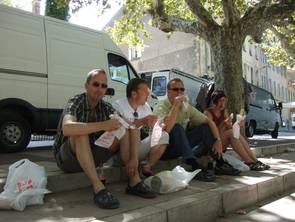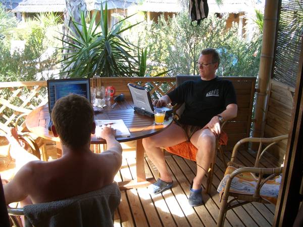 Mit Sack und Pack fuhren wir zu viert (Christoph und Robbi, Karin und ich) in 2 Autos nach Südfrankreich und quartierten uns in unser Mobilwohnheim ein. Silke hatte es vorgezogen zu fliegen, anstatt eines der Kreislaufgeräte auf dem Schoss zu transportieren…unverständlich;-)